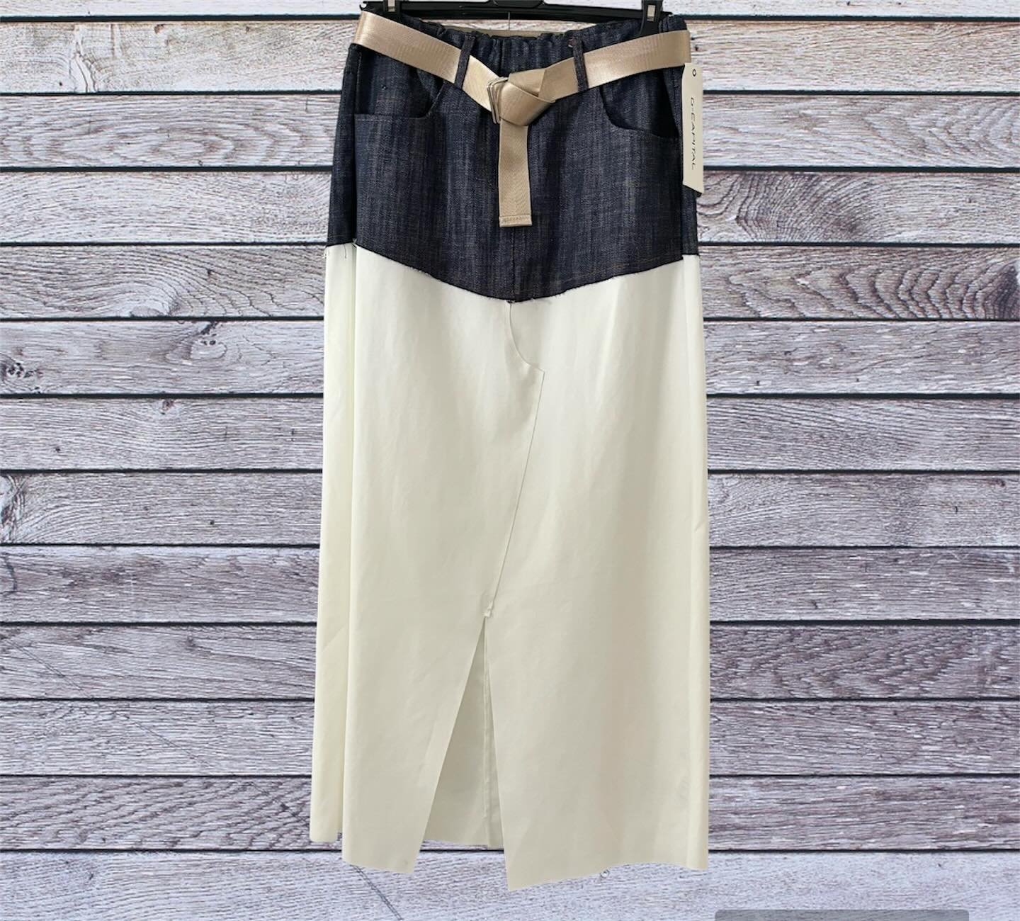 GONNA LUNGA BICOLOR JEANS E BIANCA. SPACCO FRONTALE, ELASTICO IN VITA